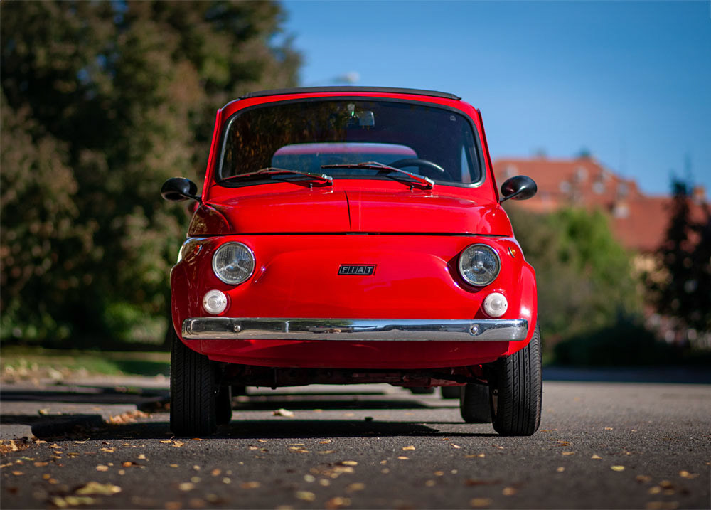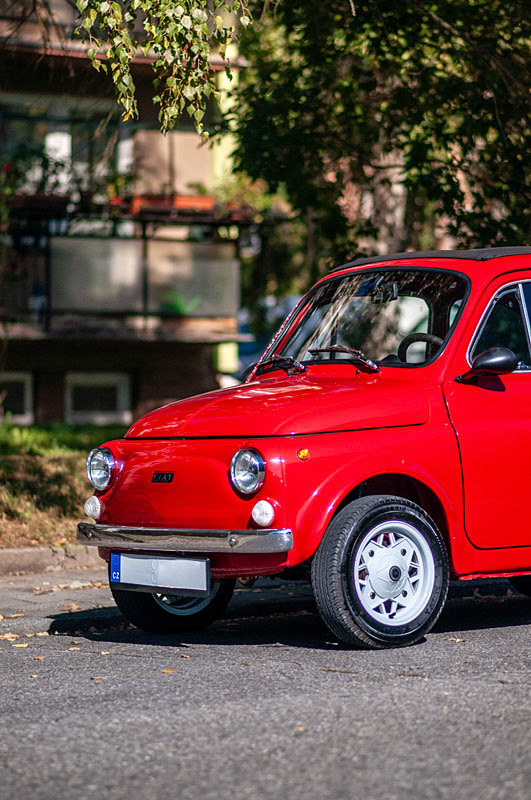 Fiat 500 vyráběný v letech 1957-1975 je opravdu maličké autíčko a v červené barvě zvlášť roztomilé :-)